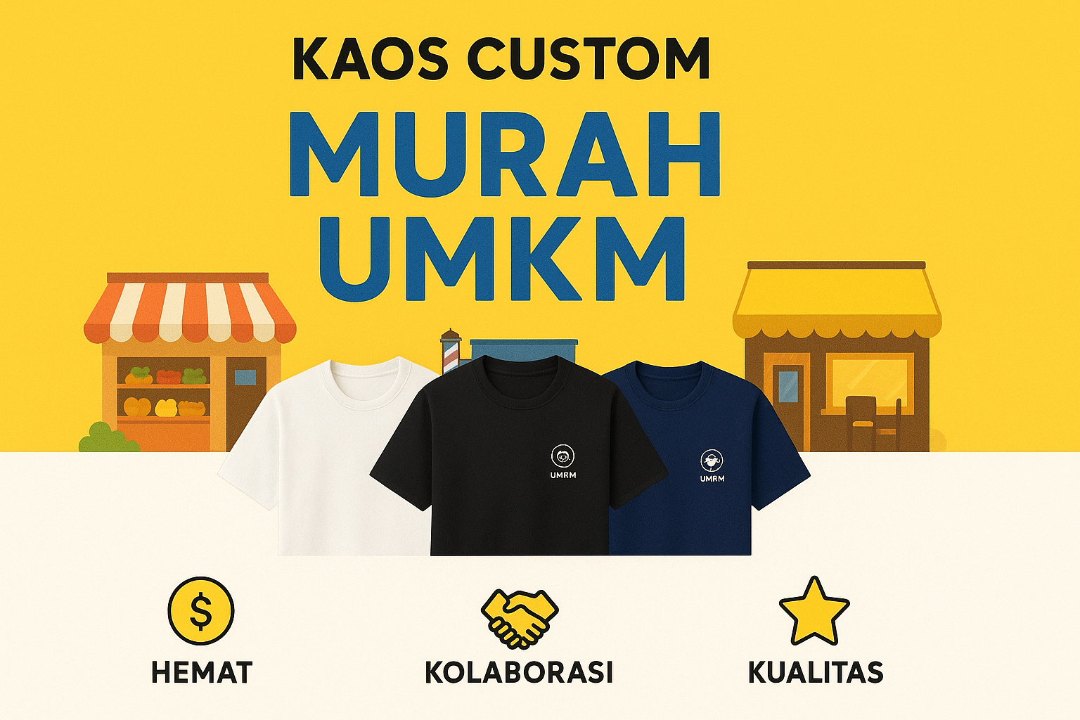 Meski harganya murah, kalau desainnya oke dan bahannya nyaman, orang bakal bangga memakainya. Kaos custom juga fleksibel: bisa dipakai sebagai seragam tim UMKM, hadiah giveaway, atau bonus pembelian. Jadi, setiap kali konsumen pakai kaos itu, brand lo otomatis dipromosikan ke banyak orang.